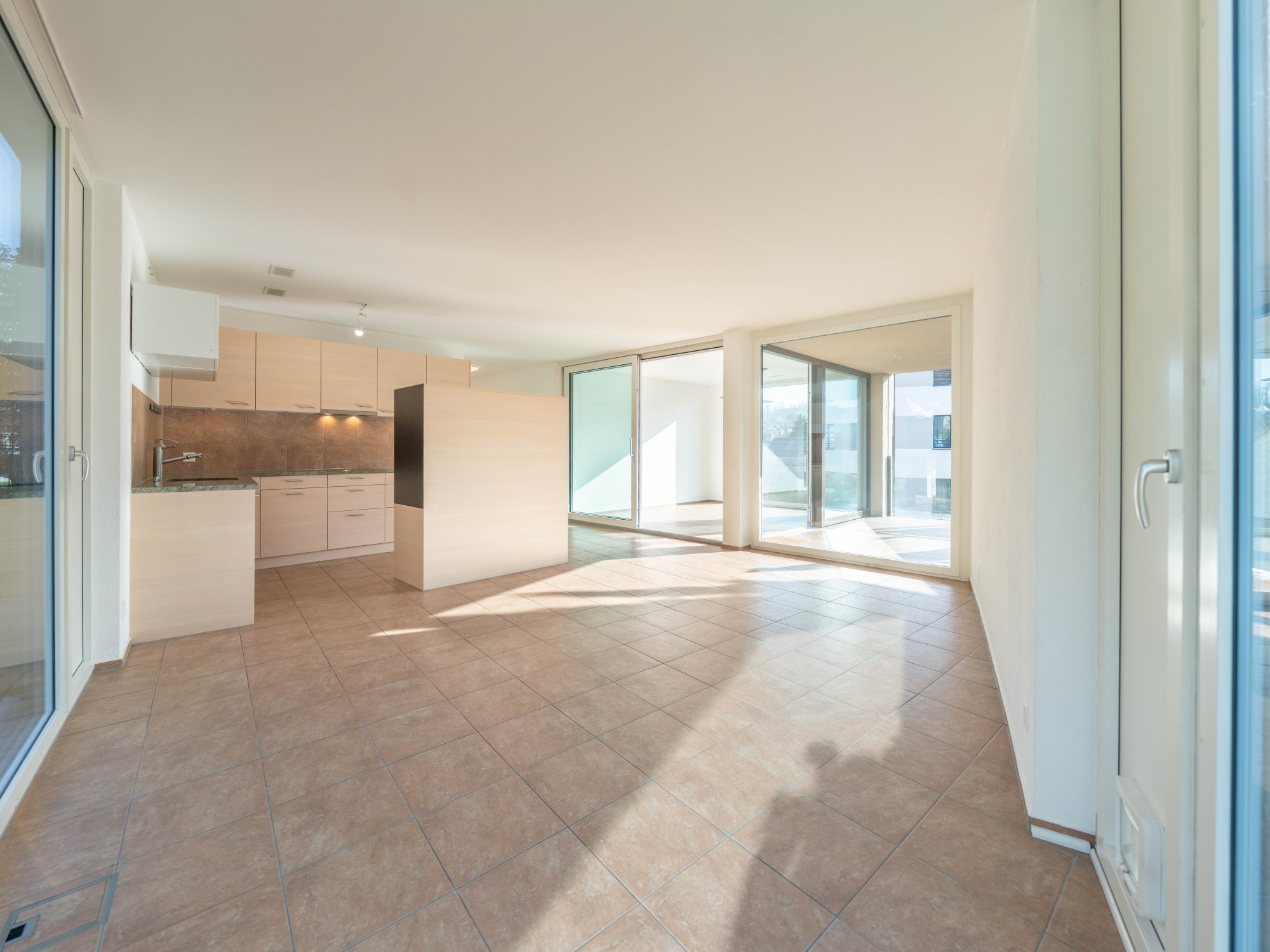 Der offene Koch- und Wohnbereich schafft eine einladende Atmosphäre. Ein beheizter Wintergarten und die geschützte Loggia schaffen eine harmonische Verbindung zwischen Innen- und Aussenbereich, ergänzt durch einen privaten Garten. Drei helle Zimmer bieten viel Raum für individuelles Wohnen. Ein Badezimmer mit grosszügiger Dusche sowie ein Gäste-WC sorgen für zusätzlichen Komfort.
