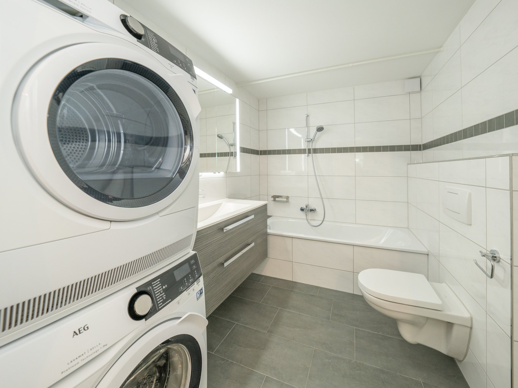 Ein Einstellhallenplatz sowie ein eigenes Kellerabteil bieten zusätzlichen Komfort.