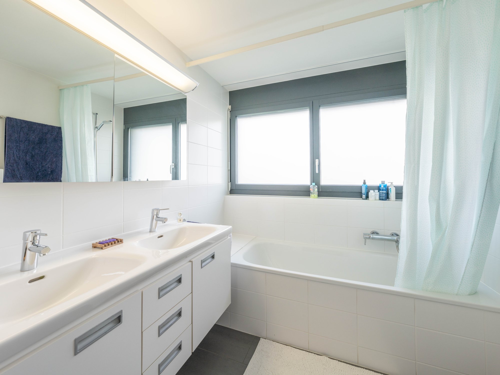 Im Dachgeschoss erwartet Sie ein grosszügiges Elternschlafzimmer mit eigenem Badezimmer, welches für absolute Privatsphäre sorgt. Ebenfalls im Dachgeschoss bietet ein grosszügiger Estrich genügend Stauraum und Abstellfläche.