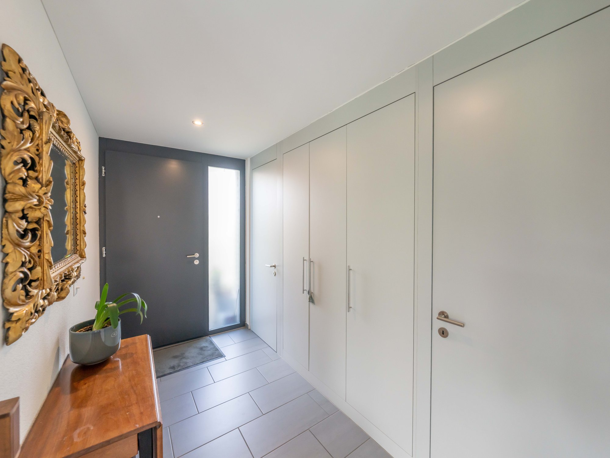 Im Erdgeschoss befindet sich der Eingangsbereich mit Garderobe und ein separates WC. Die moderne und offene Küche bietet direkten Durchgang zum lichtdurchfluteten Wohn- und Essbereich mit angrenzendem, beheiztem Wintergarten. Der Wohnbereich bietet direkten Zugang zum gemütlichen Gartensitzplatz.