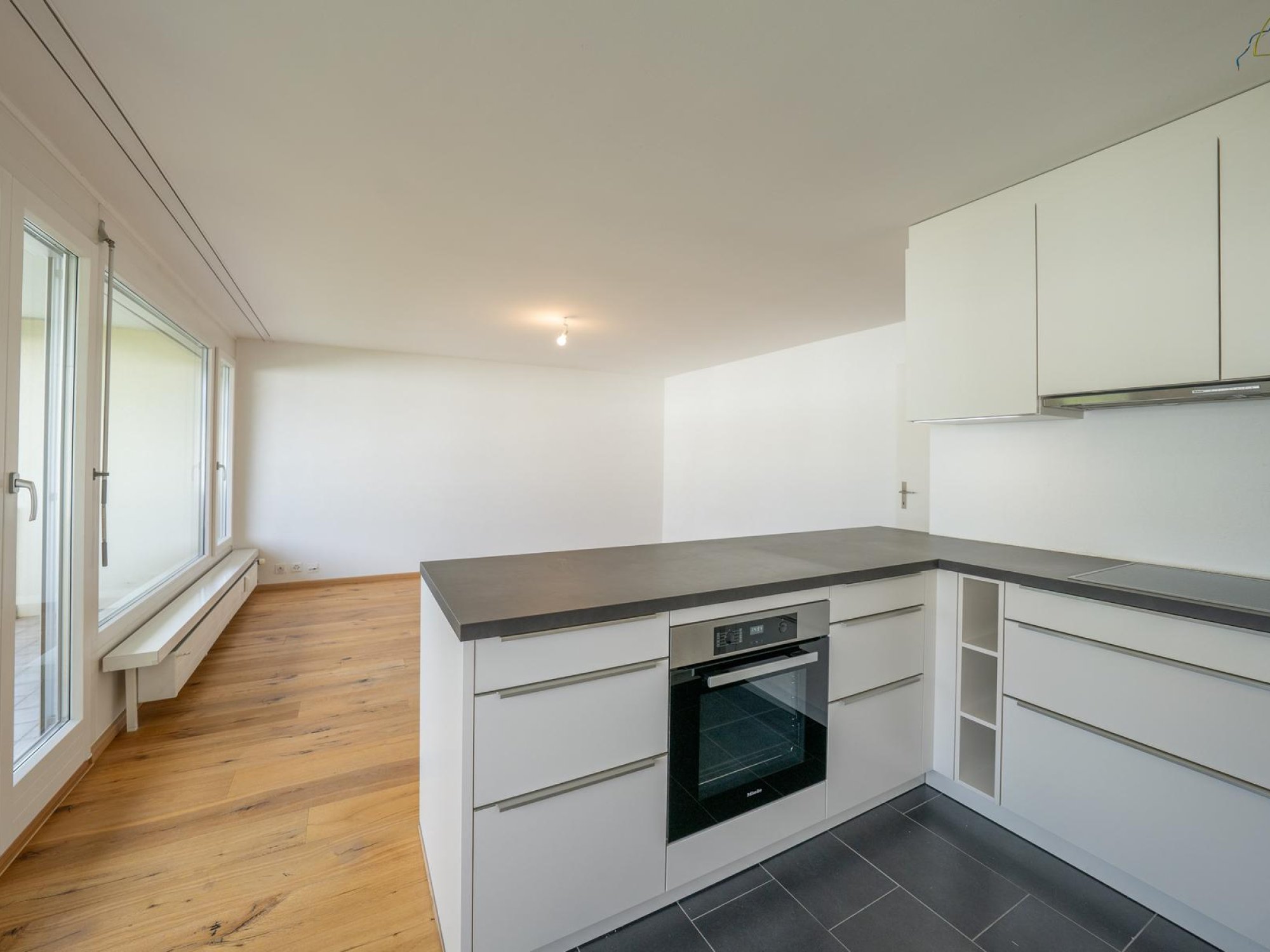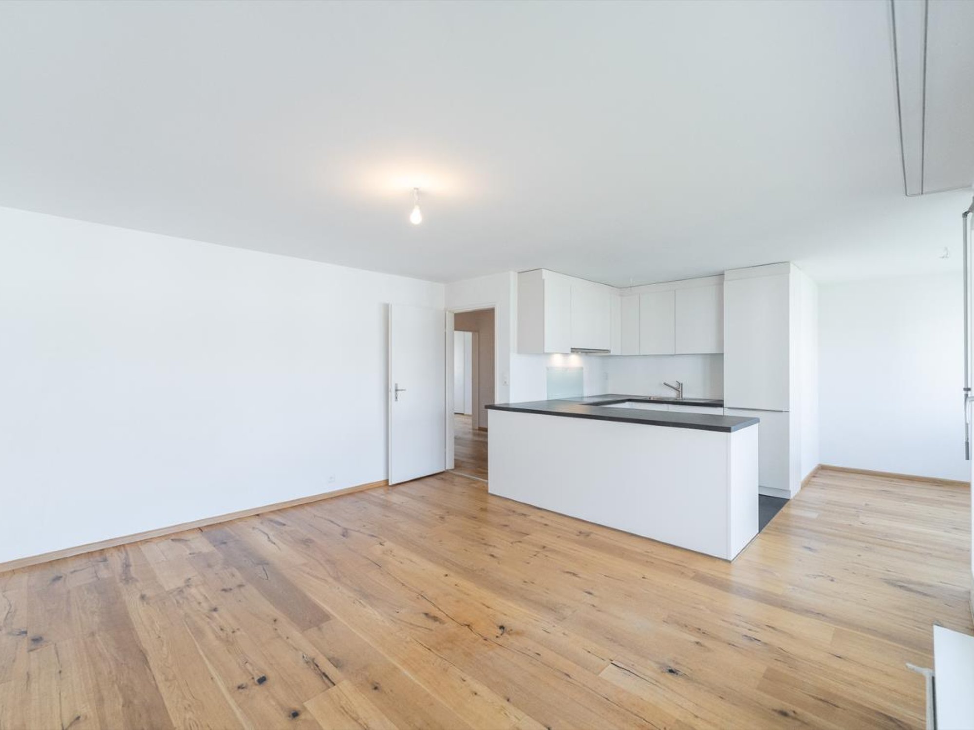Beim Betreten der Wohnung erwartet Sie ein grosszügiger Eingangsbereich mit einem praktischen Réduit. Das Zentrum der Wohnung bildet die offene Wohnküche mit neuesten Miele-Geräten und direktem Zugang zum gedeckten Balkon mit einer herrlichen Aussicht. Drei gut geschnittene Schlafzimmer bieten vielfältige Nutzungsmöglichkeiten und ausreichend Platz für Familie, Gäste oder ein Homeoffice. Das moderne Badezimmer mit bodenebener Dusche sowie das separate WC sind stilvoll und funktional gestaltet.