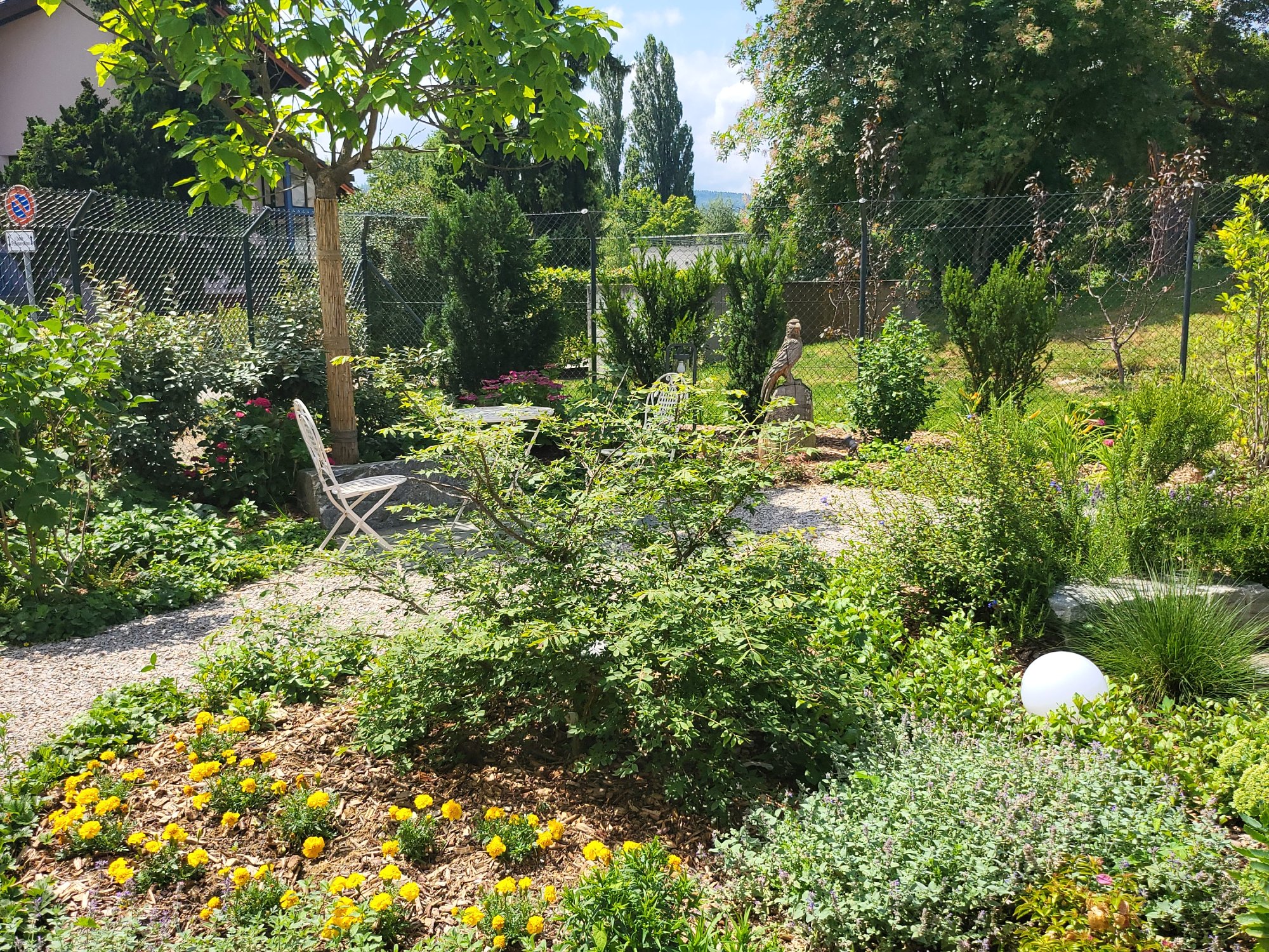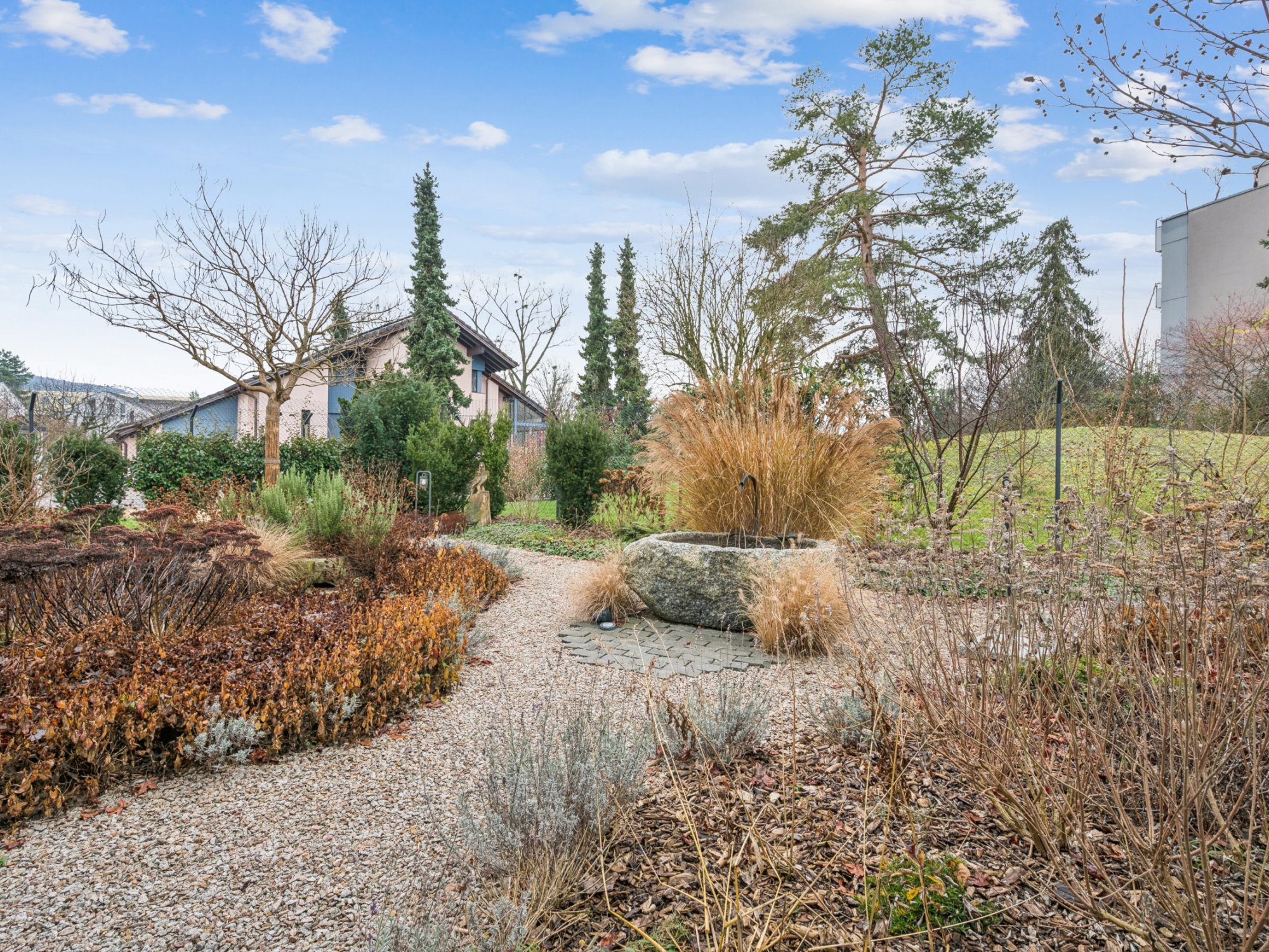 Die Poggenpohl-Küche mit Kochinsel, Steamer, Backofen, Bora-Kochfeld, zwei Geschirrspülern, zwei Spülbecken, Weinkühler und hochwertigen Fronten lädt zu kulinarischen Genüssen ein. Eine Smarthome-Steuerung regelt Beleuchtung, Storen und Gartenbewässerung, ein Lift verbindet alle Etagen, und zwei Terrassen sowie eine Dachterrasse mit über 40m² bieten Möglichkeiten für Whirlpool oder Sauna. Der gedeckte Gartensitzplatz verfügt über Heizstrahler, der Garten besticht durch reichhaltige Bepflanzung und einen Brunnen aus Tessiner Findling. Der nahezu uneinsehbare Garten mit absoluter Privatsphäre ist ein wahrer Traum.