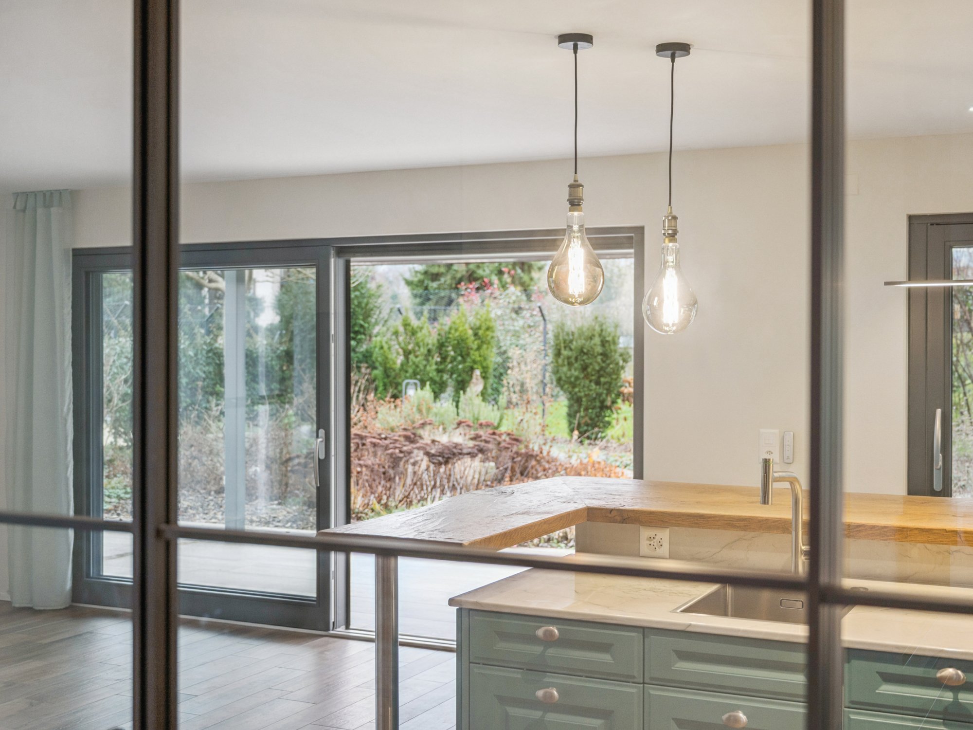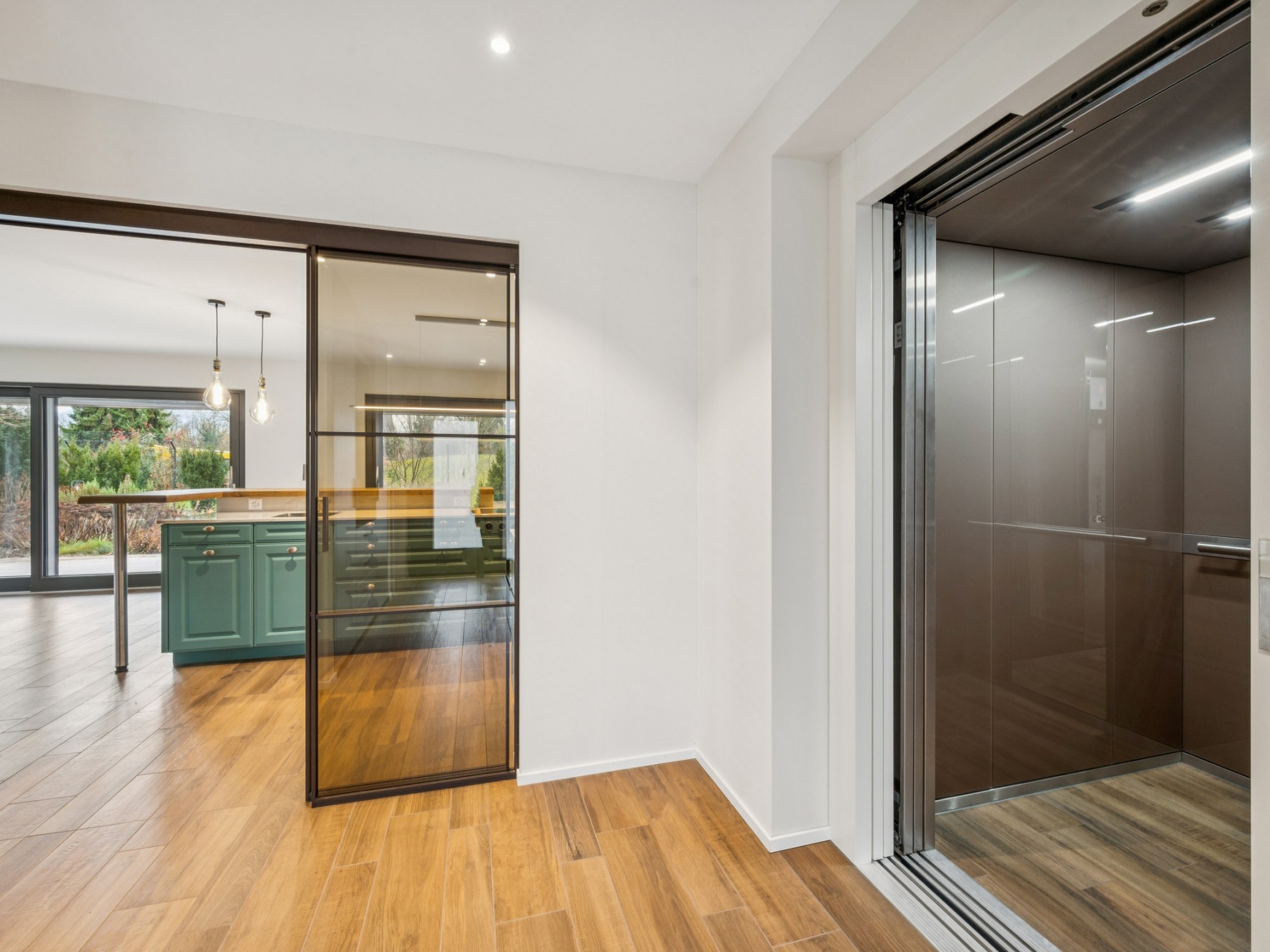 Die Poggenpohl-Küche mit Kochinsel, Steamer, Backofen, Bora-Kochfeld, zwei Geschirrspülern, zwei Spülbecken, Weinkühler und hochwertigen Fronten lädt zu kulinarischen Genüssen ein. Eine Smarthome-Steuerung regelt Beleuchtung, Storen und Gartenbewässerung, ein Lift verbindet alle Etagen, und zwei Terrassen sowie eine Dachterrasse mit über 40m² bieten Möglichkeiten für Whirlpool oder Sauna. Der gedeckte Gartensitzplatz verfügt über Heizstrahler, der Garten besticht durch reichhaltige Bepflanzung und einen Brunnen aus Tessiner Findling. Der nahezu uneinsehbare Garten mit absoluter Privatsphäre ist ein wahrer Traum.