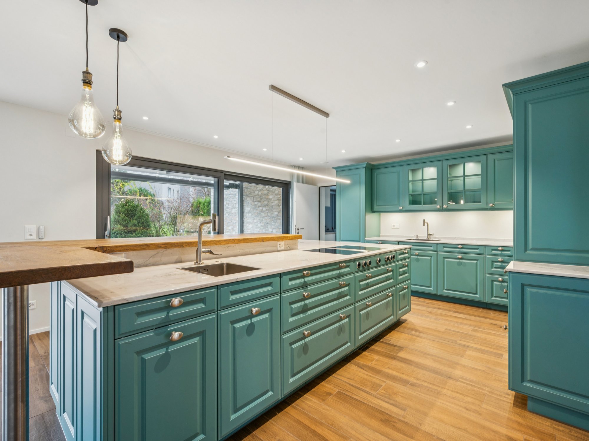 | Extras: | Lift in alle Etagen, Grundstück und Garten komplett eingezäunt, Einfahrtstore zum Grundstück, Luxusküche von Poggenpohl mit Premiumhaushaltgeräten u.a. Steamer, Backofen, Bora-Kochfeld, 2x Geschirrspüler, 2x Waschbecken, Weinkühler, hochwertige Fronten und Arbeitsflächen, Kochinsel mit Theke. Smart-Home-Steuerung im gesamten Gebäude ( u.a. Beleuchtung Innen wie Aussen und Storen). Entkalkungsanlage, Ladestation im Carport, ca. 5 Aussenparkplätze, geräumige Garage, diverse Einbauschränke, Ankleideraum mit Schiebetüren, Wirtschaftsraum mit WA/TU, Dachterrasse rund 40m² mit Möglichkeit für Whirlpool oder Sauna, Fliegenschutzgitter an allen Fenstern, Gartenanlage mit reichhaltiger Bepflanzung und einem Brunnen aus einem Tessiner Findling (Smarthome gesteuert). |