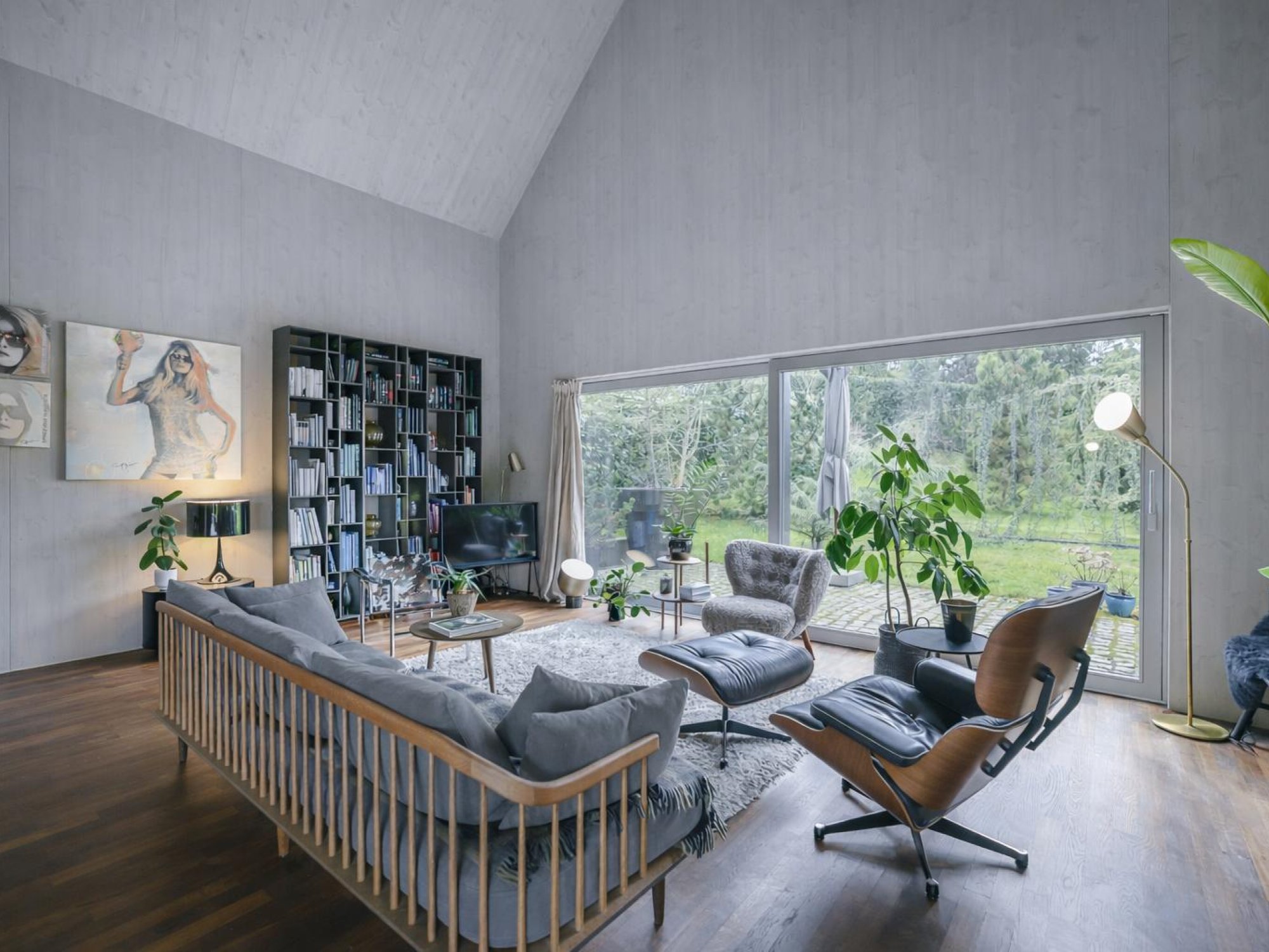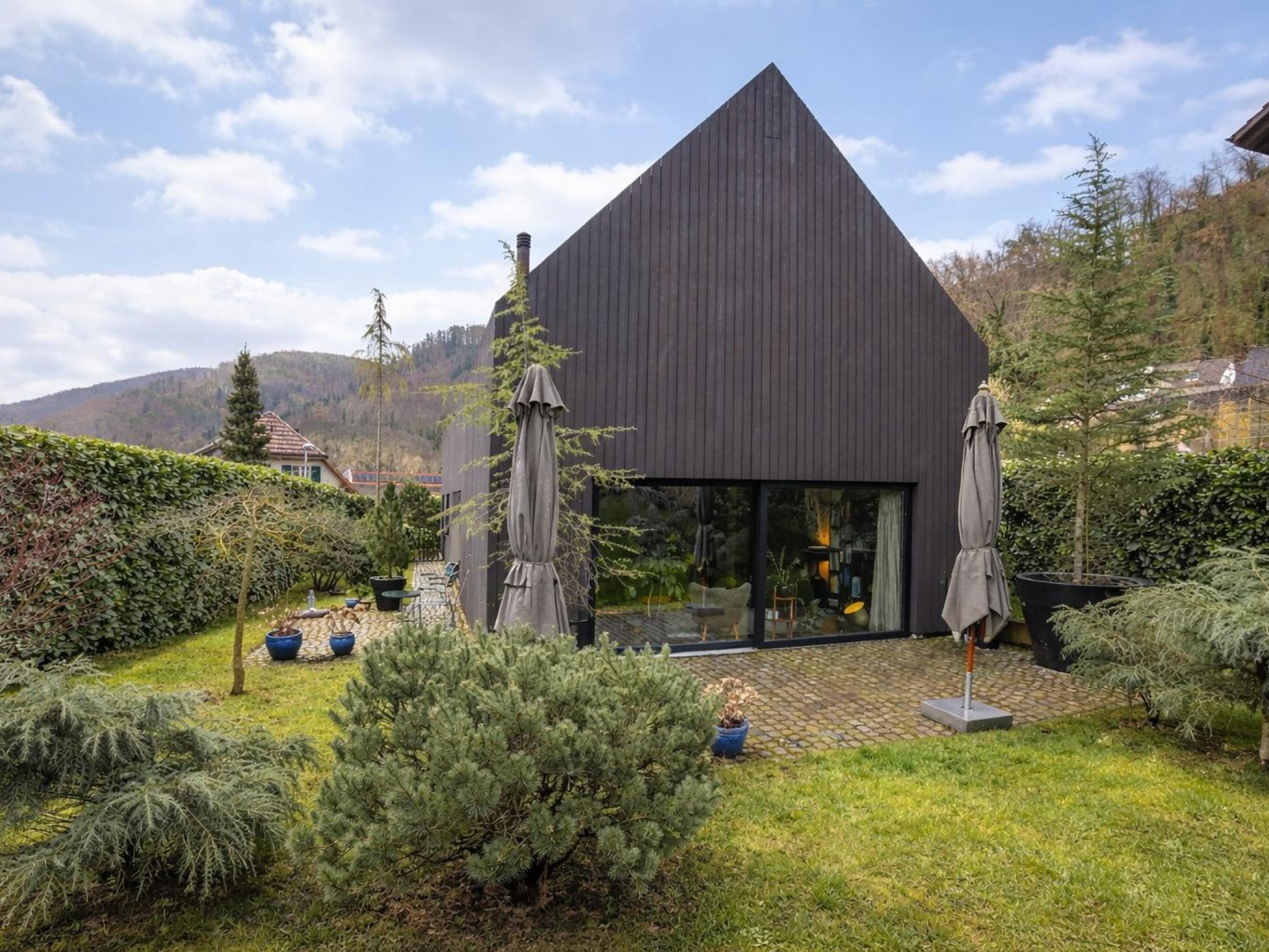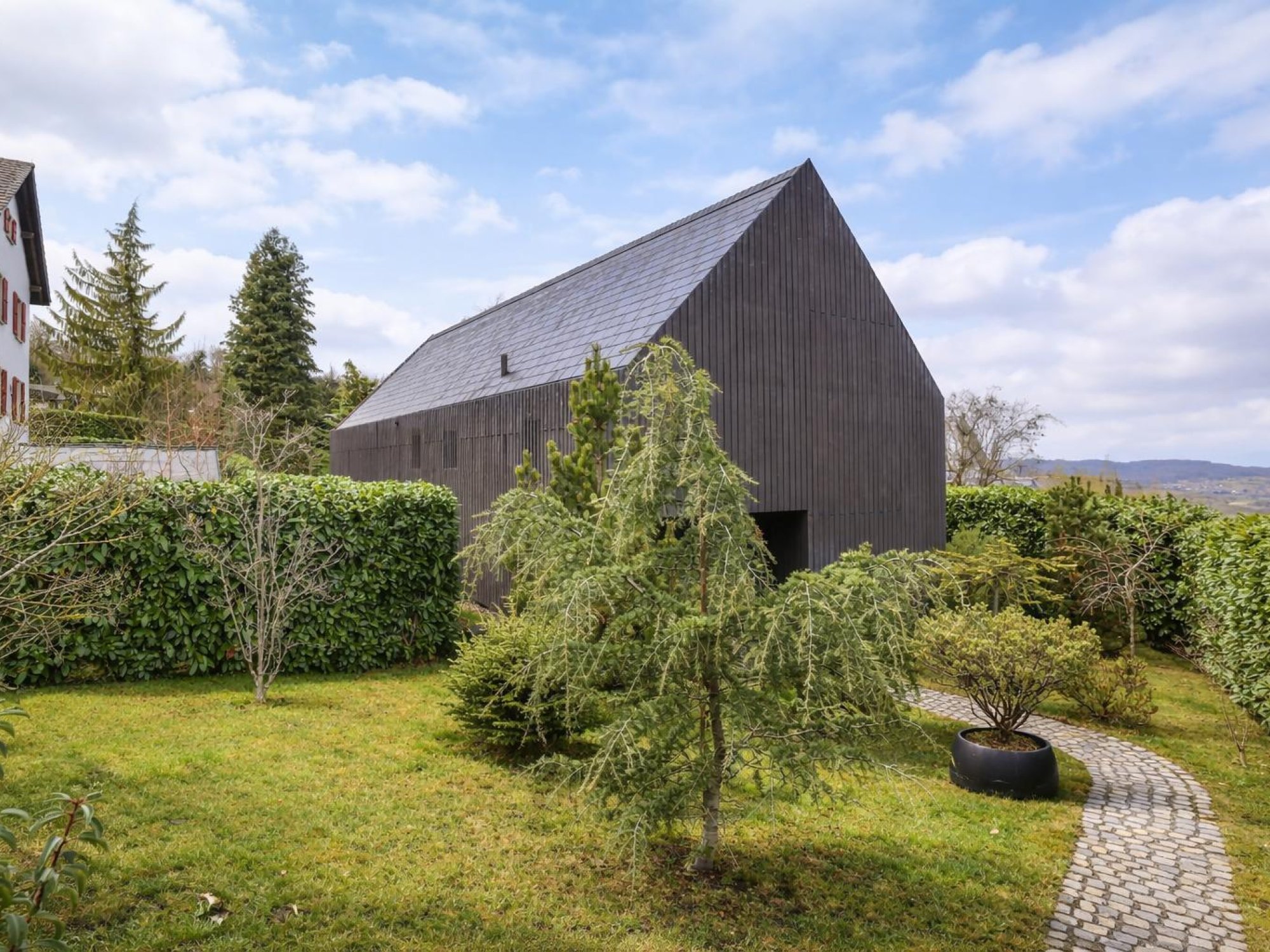 Dieses freistehende 4½ Zi.-Einfamilienhaus ist weit mehr als nur ein Zuhause, es ist ein architektonisches Statement. Ein absolutes Unikat für Menschen, die das Besondere suchen. Das Haus steht auf einer aussergewöhnlichen, U-förmig angelegten Parzelle. Die stilvolle Holzfassade unterstreicht den natürlichen Charakter der Liegenschaft und fügt sich harmonisch in die Umgebung ein.