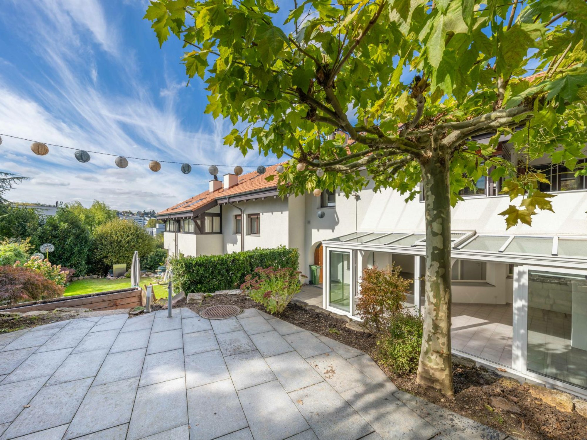 | Extras: | Wintergarten, eigener Gartenanteil (G1), Umluft-Cheminée, 1 Einstellhallenplatz und Fahrradabstellmöglichkeiten in der Einstellhalle. |