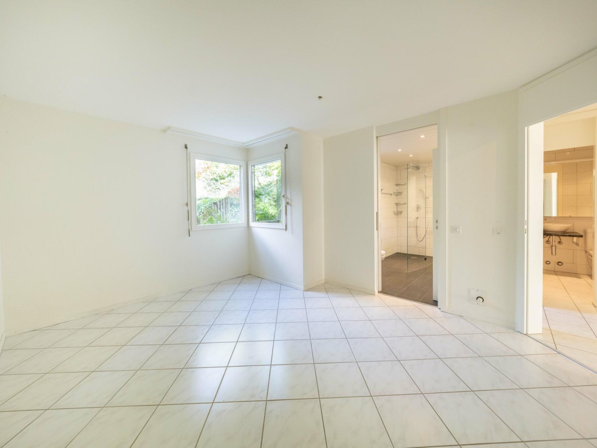Die elegante Küche, das separate WC sowie das grosszügige Bad mit begehbarer Dusche (direkter Zugang zum Schlafzimmer) überzeugen ebenso wie das zweite Schlafzimmer.